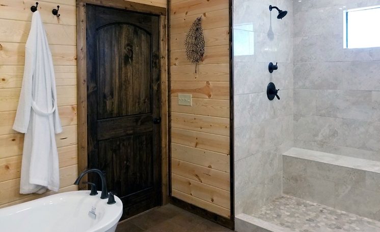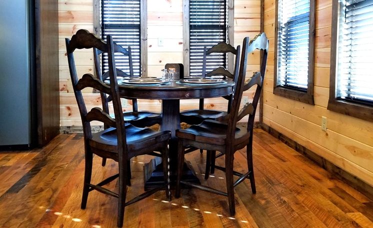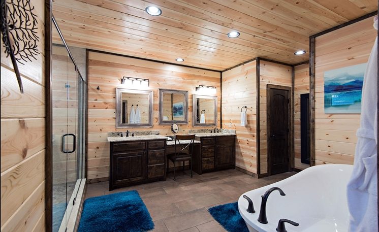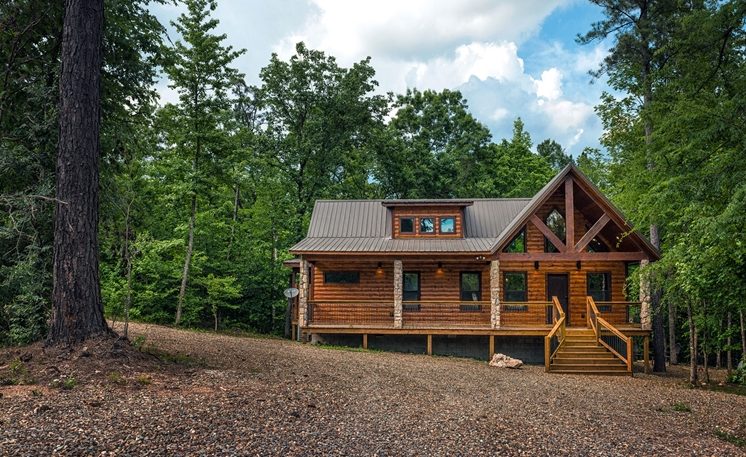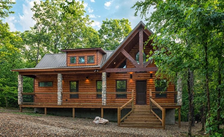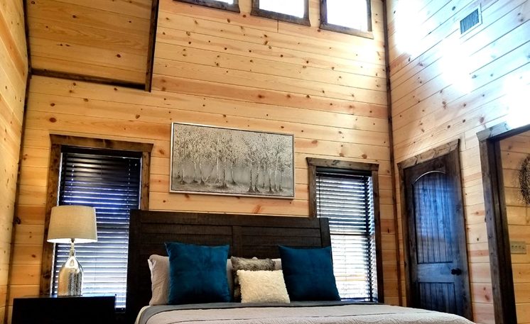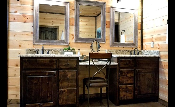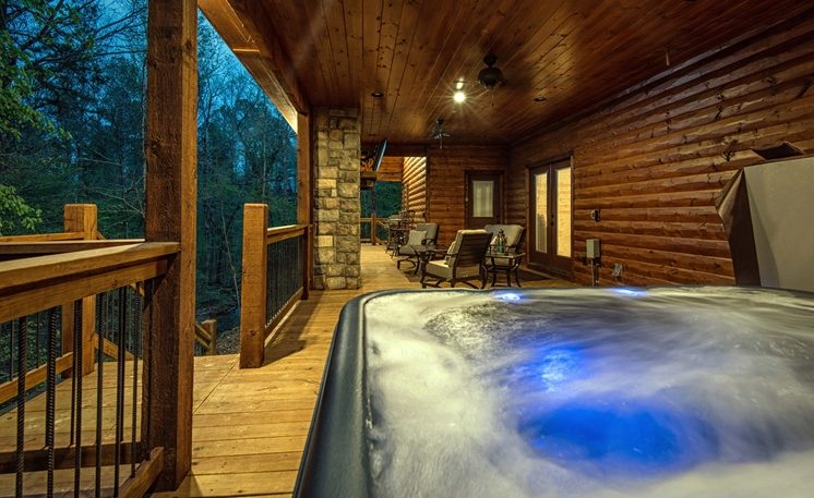 A mountain creek runs along the back of the cabin. 8 Oaks is definitely a first-class cabin getaway! You’ll find that this cabin is luxurious, exciting, and romantic all surrounded by Oak and Pine trees.