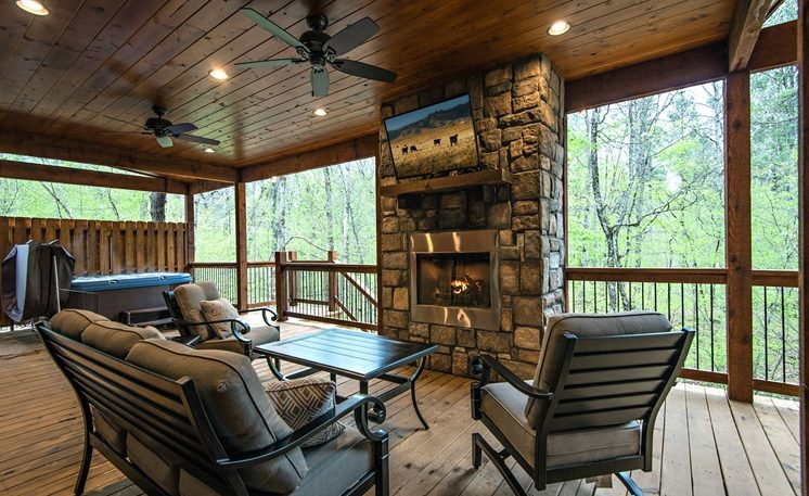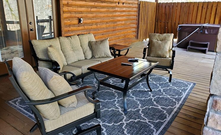 Julia (9/13/24 – 9/15/24) Rating ***** 5/5 – We were celebrating our 13th Anniversary and loved the area. This is our first time visiting this area. Loved the cabin and the covered back porch with the fireplace and tv. I am very happy with our experience.