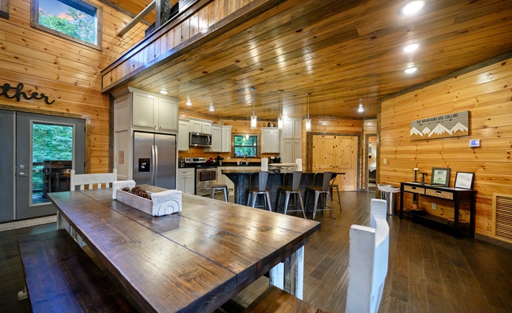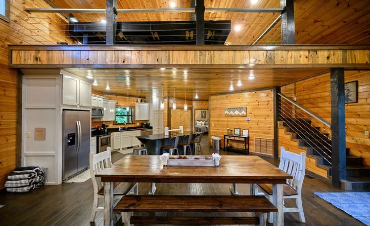 Spacious Lodge – Modern Rustic Design | 4 Bedrooms (3 Masters/King Beds) | 4 Full Bathrooms | Sleeps 12 | Loft Area Game Room | Shuffle Board and Foosball | Spacious Deck | Swing Set | Pet Friendly
