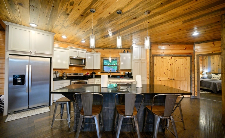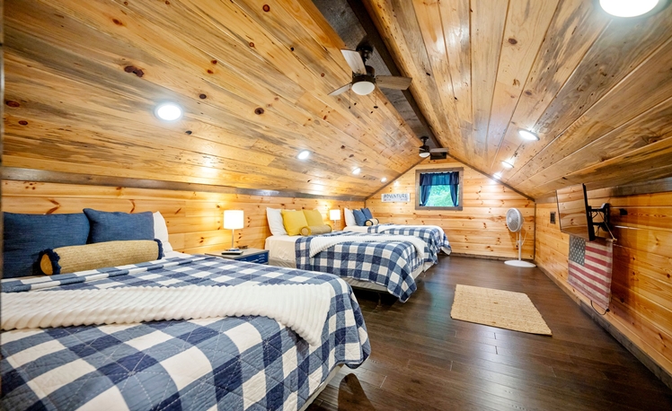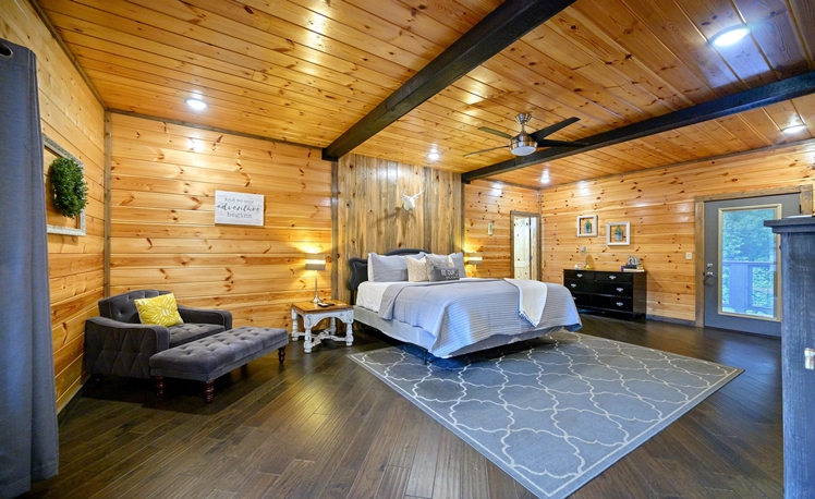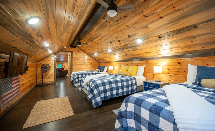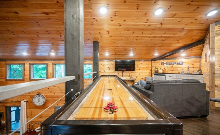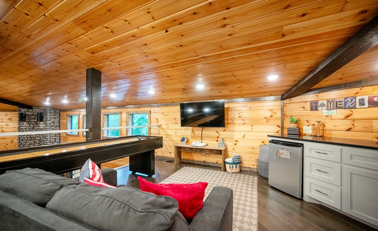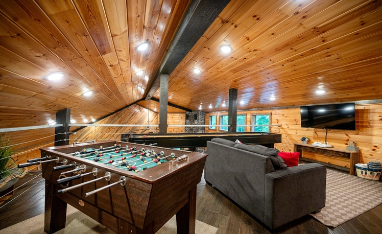 The Grey Goose Lodge’s indoor living areas are spacious with plenty of comfortable seating, open to the kitchen and dining areas. 3 Master Bedrooms are located on the first floor. The 2nd floor is great for groups/kids, with a large bedroom (3 Full Beds) a loft area with a Shuffle Board, Foosball Table, seating, TV, and mini-kitchen amenities.