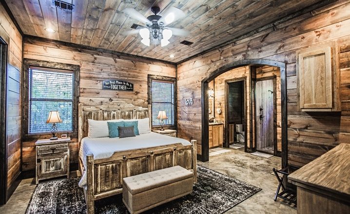 Couples Luxury Cabin | 1 Master Bedroom | Sleeps Up To 4 | Rich Woods | Farmhouse Upscale Design | Secluded | Pet Friendly | Outdoor TV, Furniture and Woodburning Fireplace