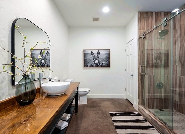 • Ensuite Bathroom – Vessel Sink and Custom Wooden Vanity