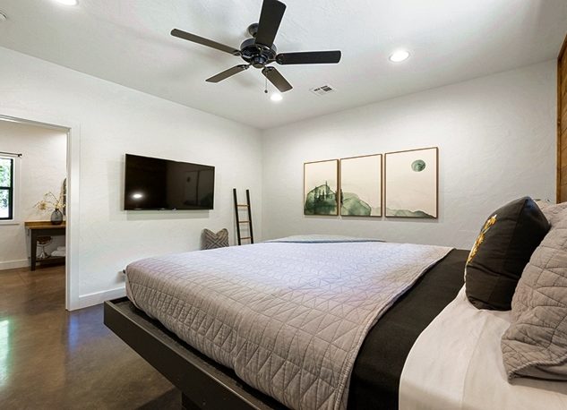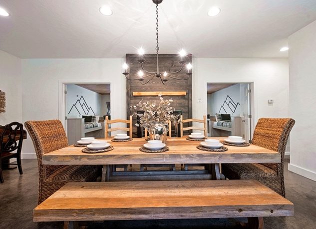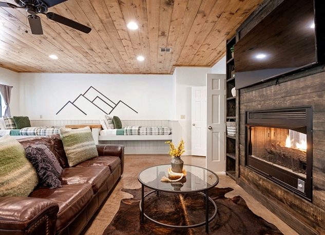 Sagebrush is a modern farmhouse cabin designed with modern details throughout. Well-appointed with two King master suites and a 4-bed bunk/game room.