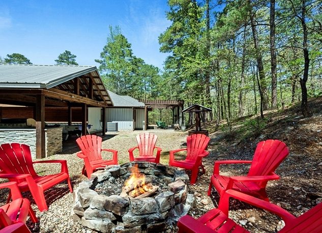 • Fire Pit with Adirondack Chairs and String Lights