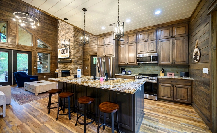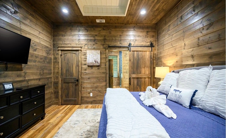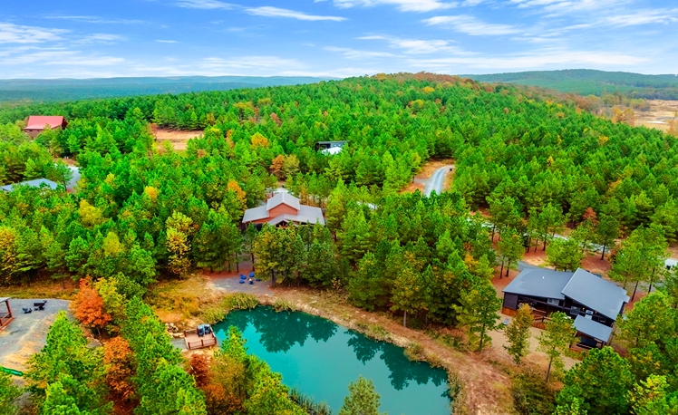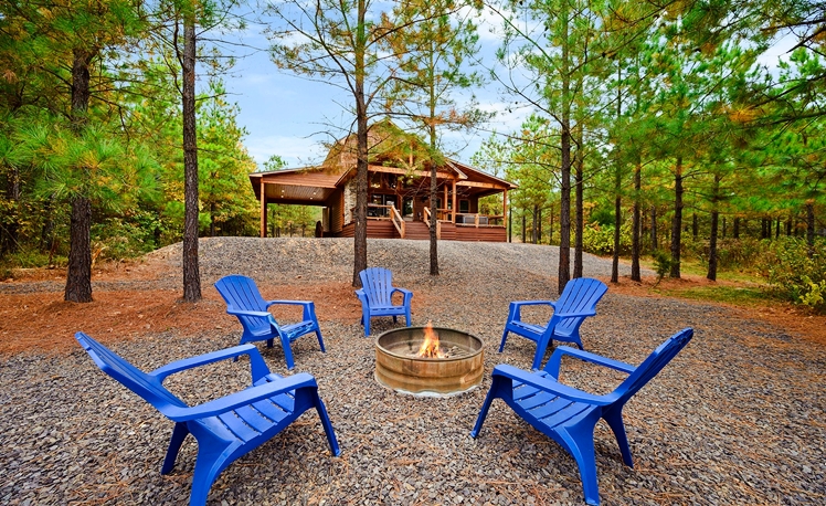 Cynthia (3/8/25 – 3/12/25) Rating: 5/5 – Broken Bow is always amazing and this cabin was extra exceptional. It was gorgeous inside and out and great for our family of 4. The highlight was definitely the back patio with fireplace, TV, and hot tub. Our favorite was the stocked pond. It was easy to fish off the bank and both my kids caught a fish in about an hour of fishing!