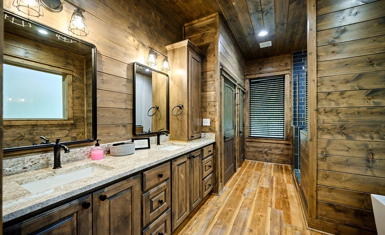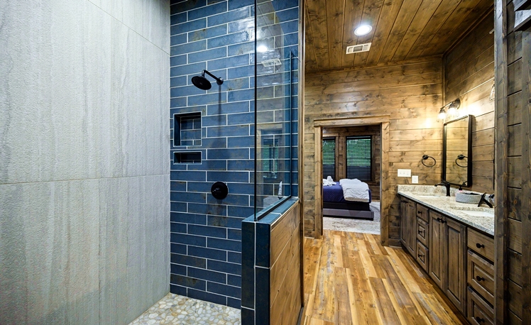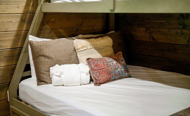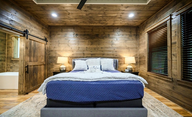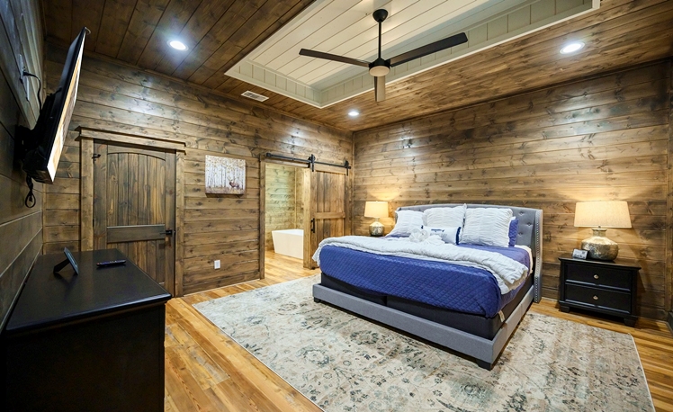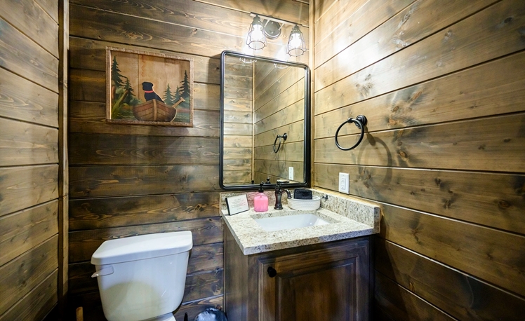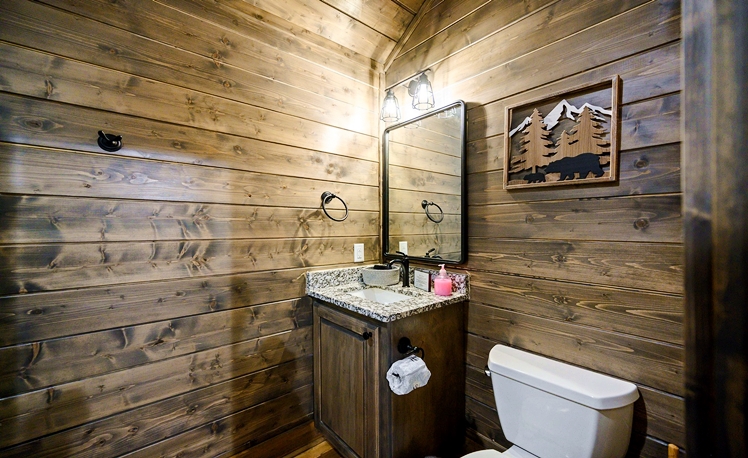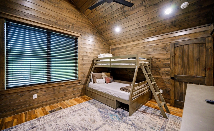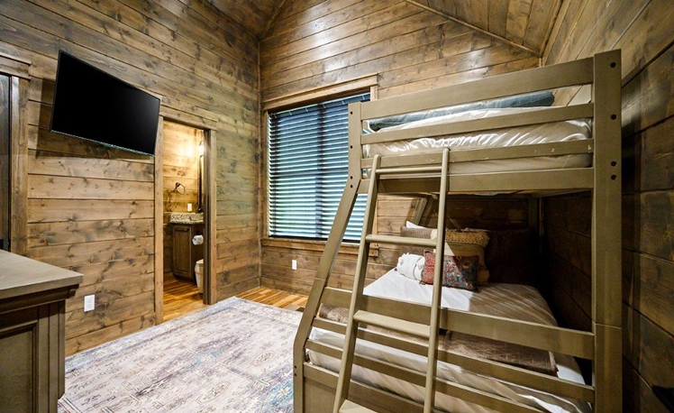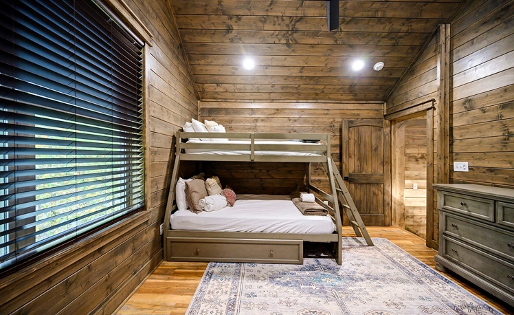 Sleepy Fox boasts a luxurious King suite, where you can indulge in a restful slumber after a day of adventure. The bunk room, featuring a twin over Full bunk, offers a cozy and inviting space for the little ones or extra guests. The 2 bedrooms come complete with private baths, walk-in showers and a one soothing soaking tub.
