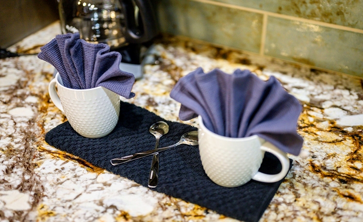 • We provide Folgers Roast Coffee, Filters, Sugar, and Creamer.