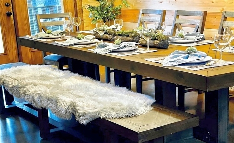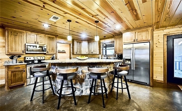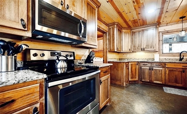 As one enters, they are greeted by an excellent open style living/dining/kitchen area. The lodge is beautifully furnished and features a fully equipped kitchen with granite countertops, stainless steel appliances, and plenty of room to gather and prepare meals.