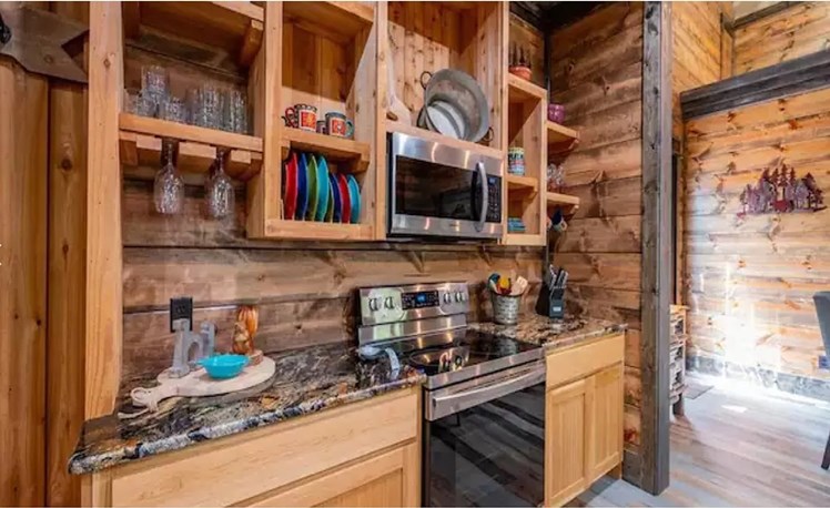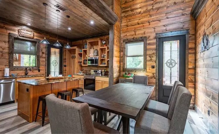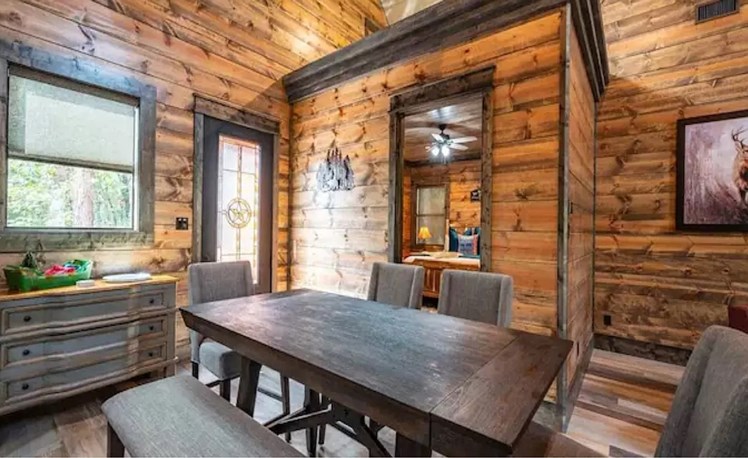 Trains I Missed is one “Train Stop” that you’ll be glad you didn’t miss! This rustic farmhouse style cabin sits among towering pines and is exquisitely designed!
