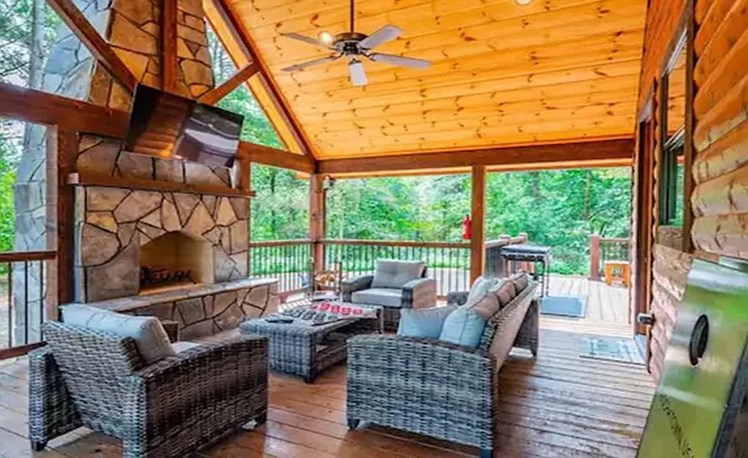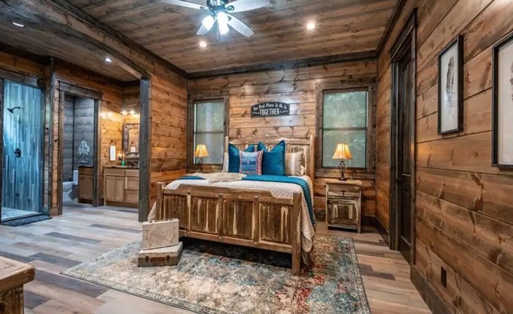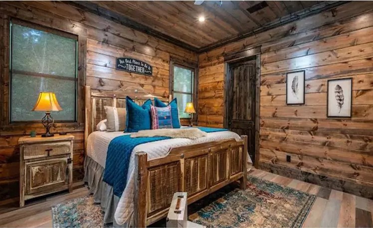 Couples Luxury Cabin | 1 Master Bedroom | Sleeps Up To 4 | Rich Woods | Farmhouse Upscale Design | Secluded | Pet Friendly | Outdoor TV, Furniture and Woodburning Fireplace