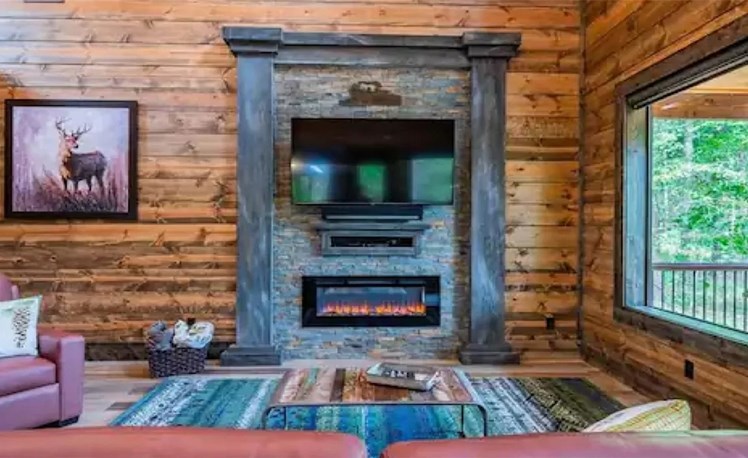 • 2 Electric fireplaces inside and 1 wood burning outside
