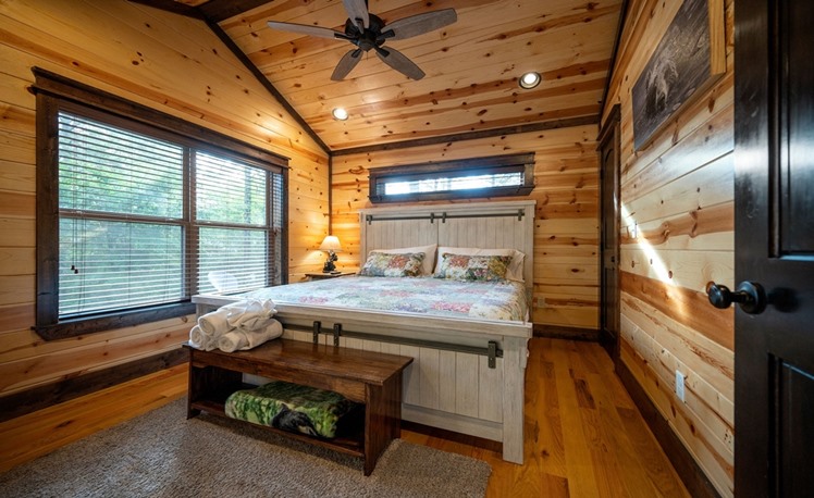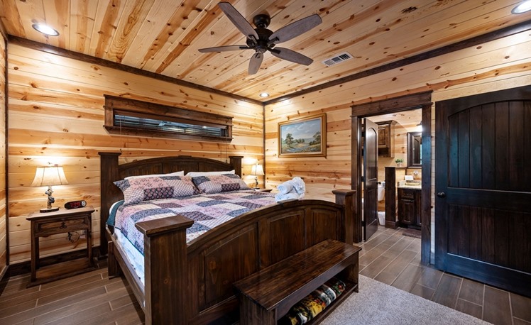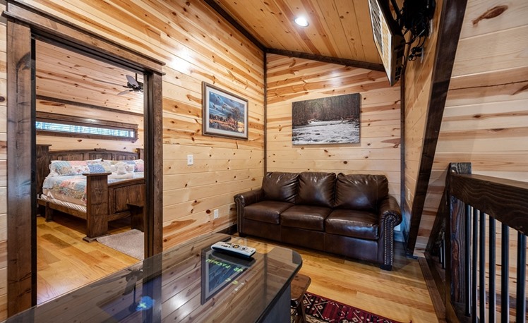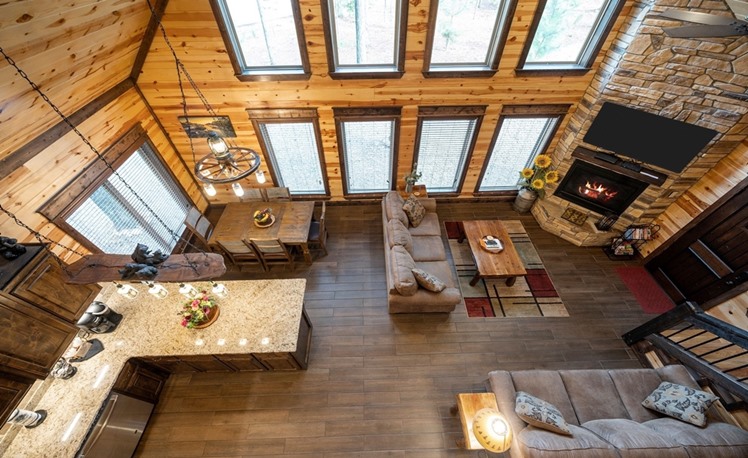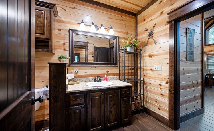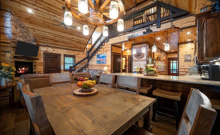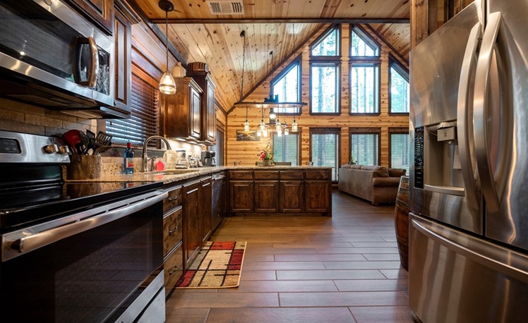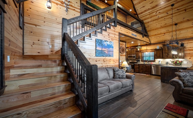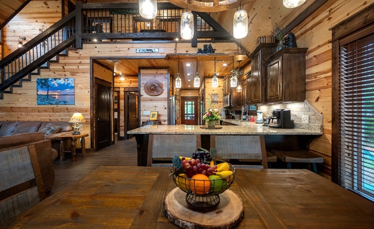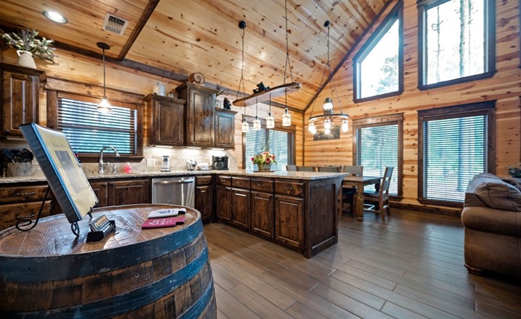 Whiskey Hollow is a 3+ Bedroom with 2.5 bathrooms that sleeps 8 comfortably and can accommodate to 10 guests. Sleeping arrangements include 3 King Bedrooms and 2 Queen sleeper sofas. The upstairs bedroom features a private balcony with a private bathroom entrance. The living area is spacious and comfortable with a 55″ Samsung TV with DirecTV programming. The kitchen is fully equipped with appliances, dishware, cutlery, and everything you need to prepare an awesome meal for the entire family!