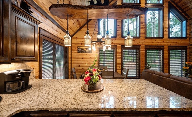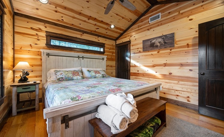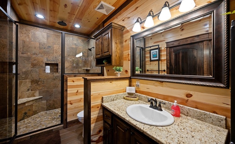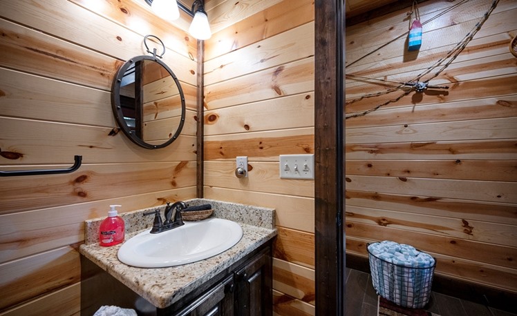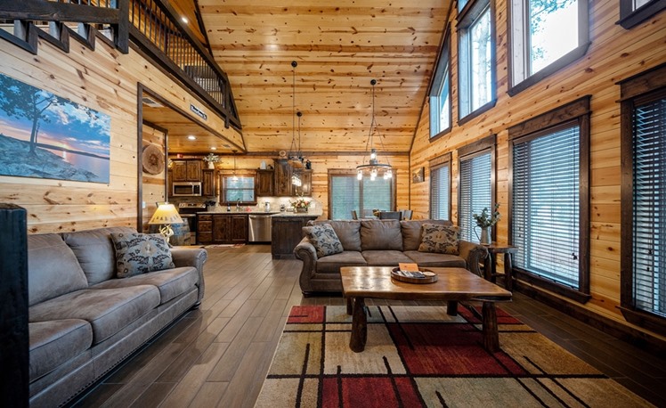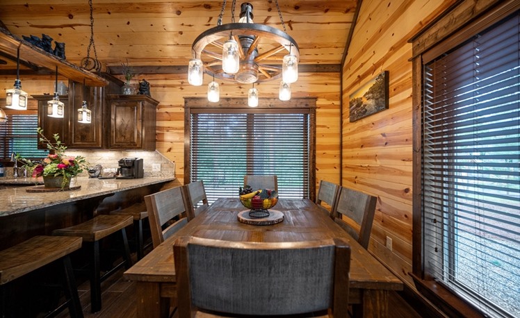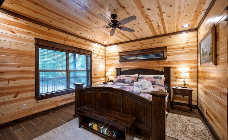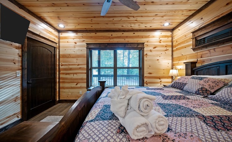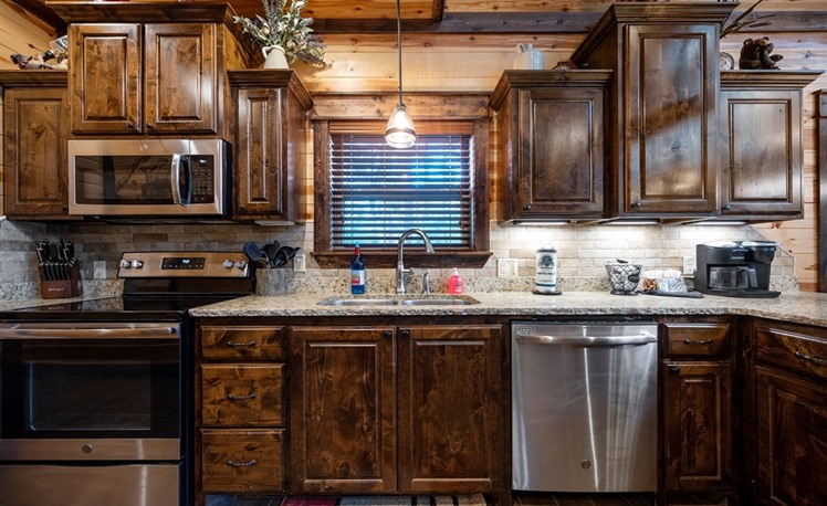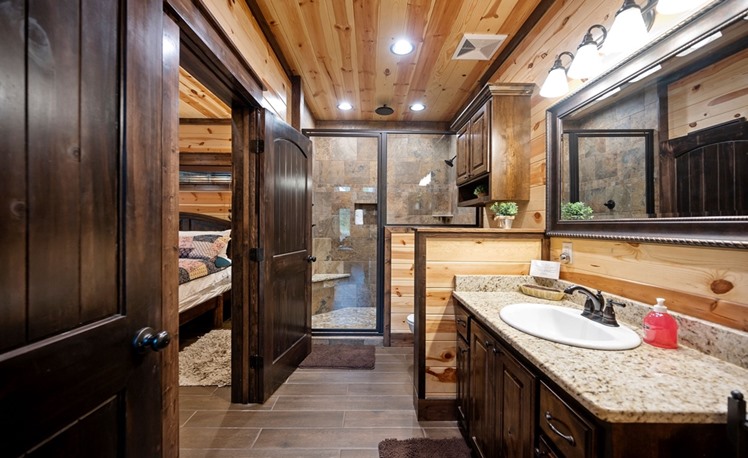 Whiskey Hollow is a 3+ Bedroom with 2.5 bathrooms that sleeps 8 comfortably and can accommodate to 10 guests. Sleeping arrangements include 3 King Bedrooms and 2 Queen sleeper sofas. The upstairs bedroom features a private balcony with a private bathroom entrance. The living area is spacious and comfortable with a 55″ Samsung TV with DirecTV programming. The kitchen is fully equipped with appliances, dishware, cutlery, and everything you need to prepare an awesome meal for the entire family!